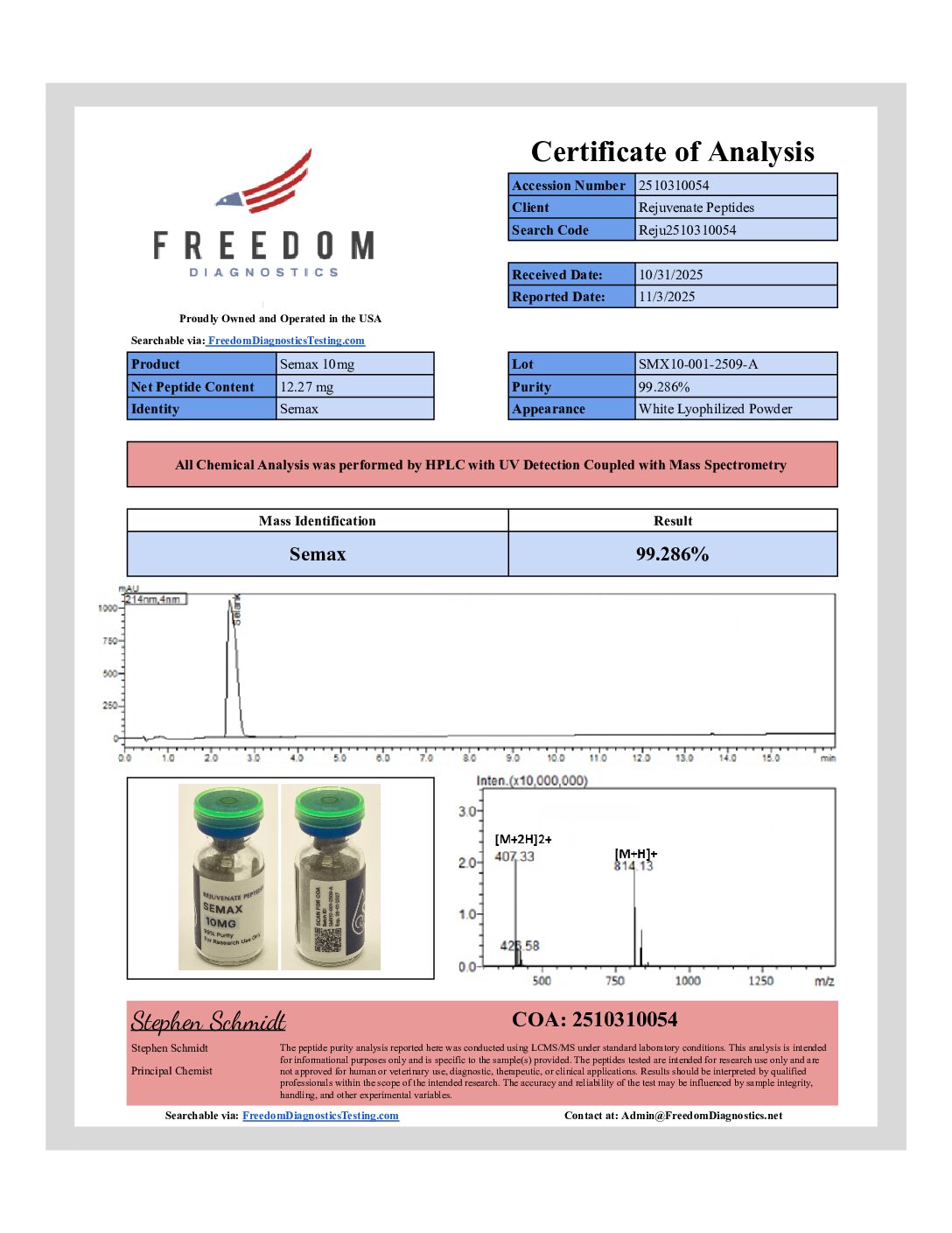 Rejuvenate Peptides operates solely as a chemical and research compound supplier. We are not a compounding pharmacy or chemical compounding facility as defined under Section 503A of the Federal Food, Drug, and Cosmetic Act, nor are we an outsourcing facility as defined under Section 503B of the same Act.